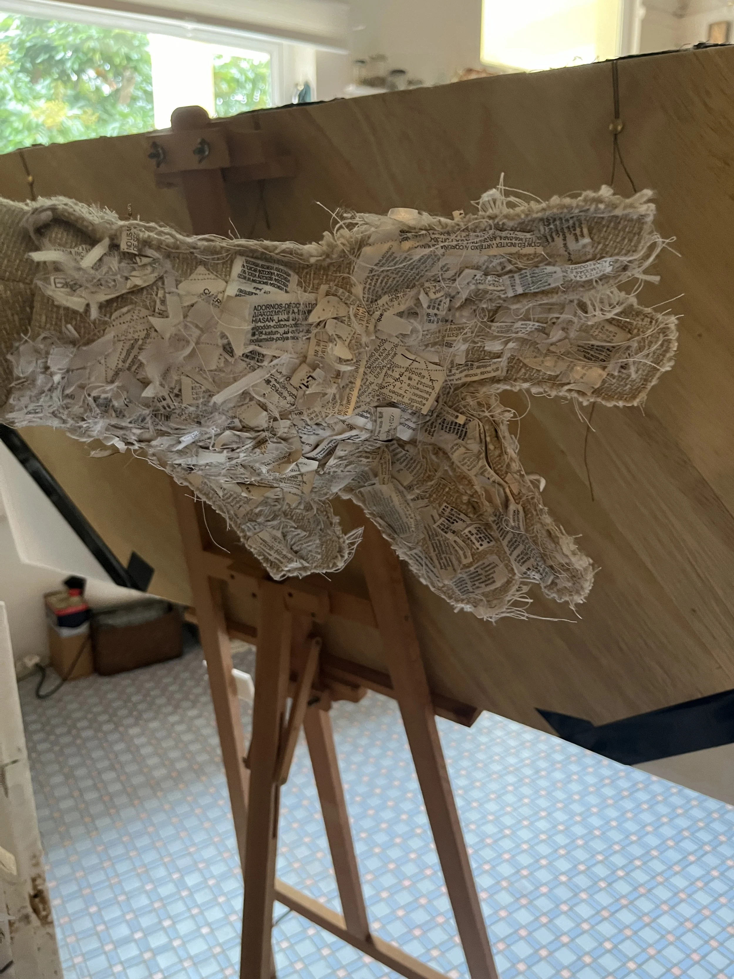 然而,在往內探尋並創作過程中,chaussette b. 發現了潛在的黑暗。 為了給她的創作注入溫度,命運介入了她,引導她找到了一本由鄰居掉棄的日本書,名為《Japan Pilot Volume 1.》。 她小心翼翼地從書籍上剪下頁面,將它們交織到她的藝術中。 這些文學片段承載著歷史和故事的重量,為其藝術創作增添了一種柔和的觸感。